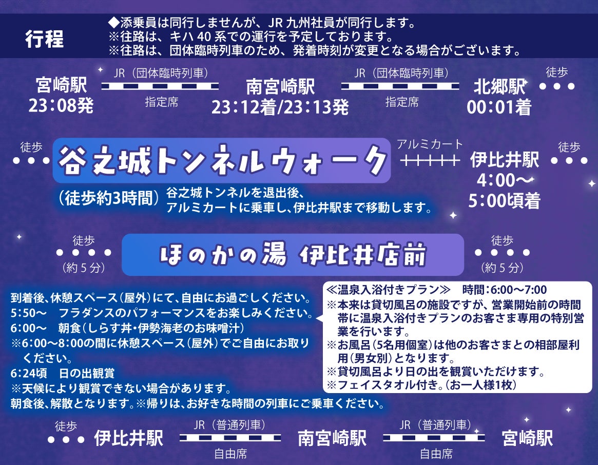 (1)ツアー名称:日南線谷之城トンネルナイトウォークの旅(宮崎駅・南宮崎駅発着)