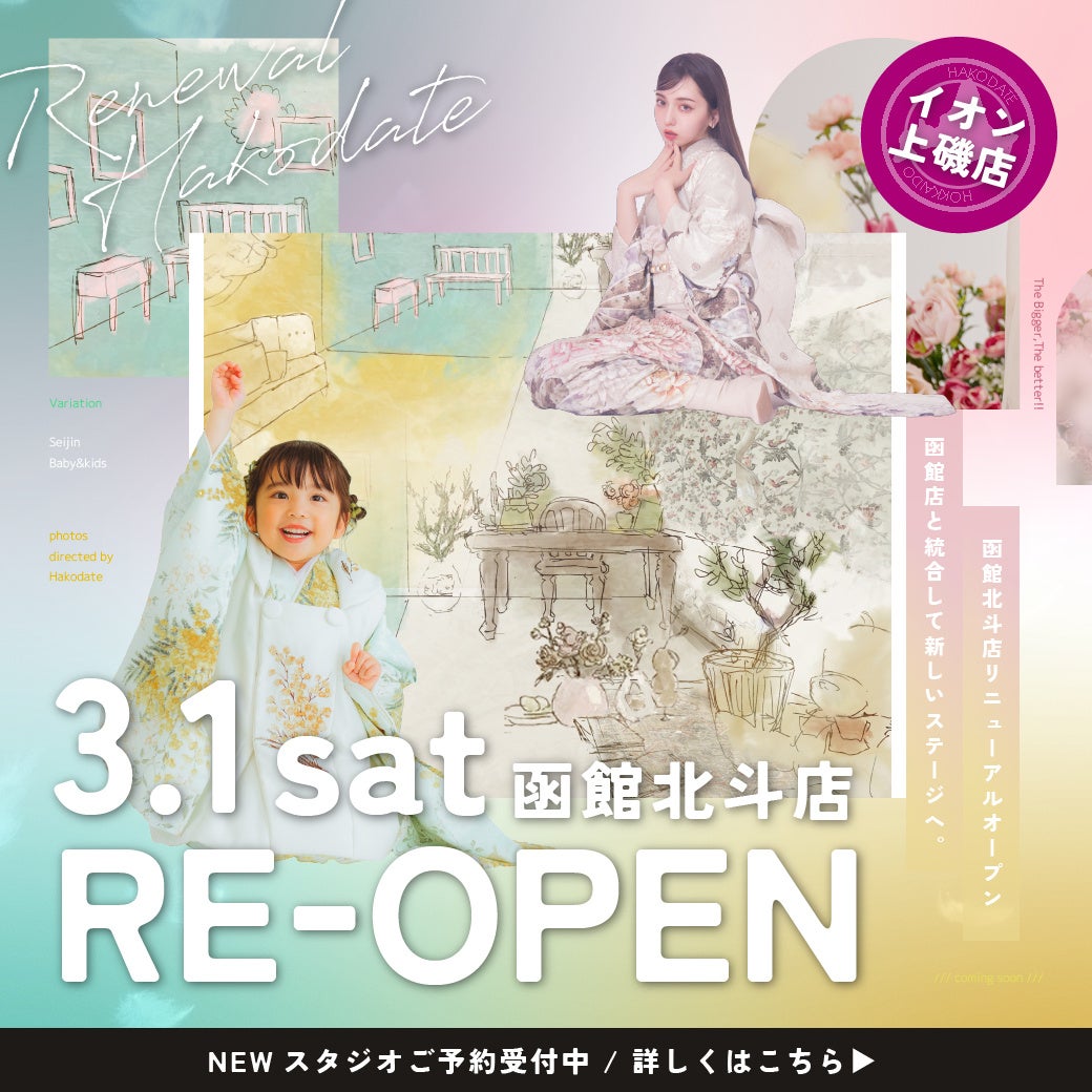 ベビー・キッズ撮影や成人撮影をご検討の方必見!函館店と函館北斗店が店舗統合し新しいステージへ進化します!函館北斗店のリニューアルスタジオ"マジカルPOPスタジオ"がオープン。