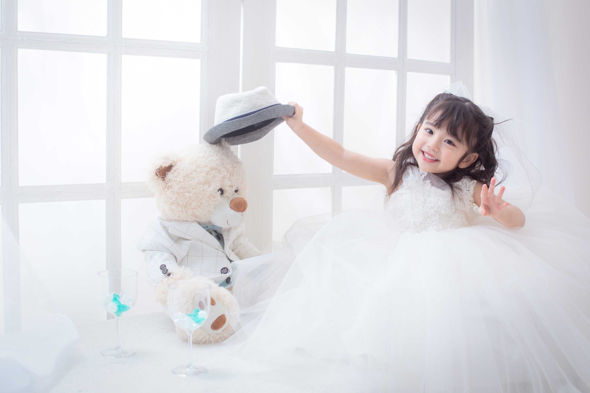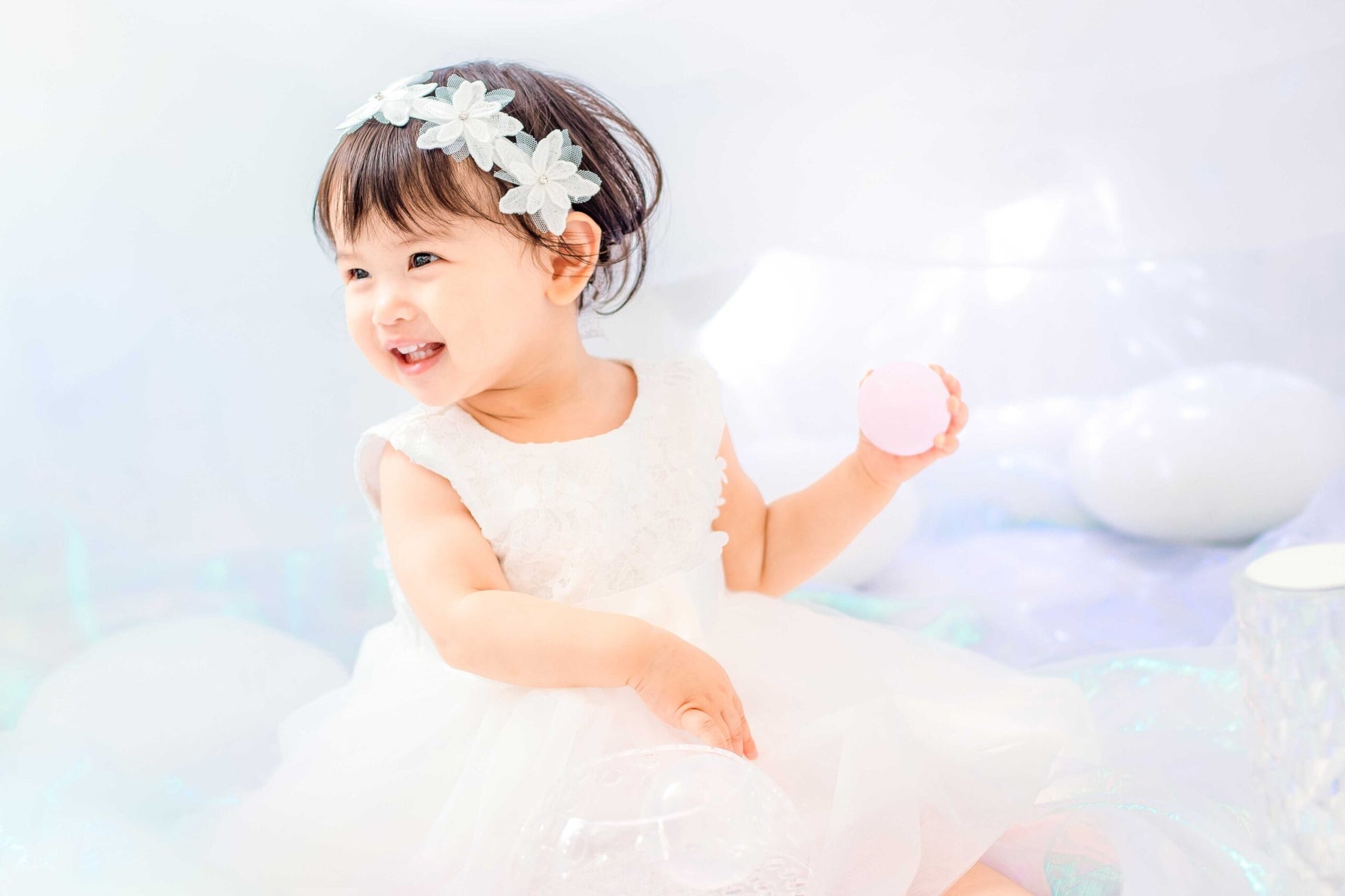可愛らしいメルヘンな小物から現代アート的な小物まで、白や水色などの同系色の衣装ももちろん。POP可愛い空間なので、自分のお部屋のようにデコレーションしながら楽しんで撮影が可能です。