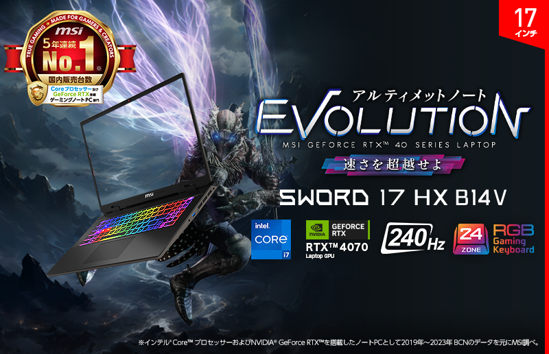・Sword 17 HX B14V シリーズ製品ページ:https://jp.msi.com/Laptop/Sword-17-HX-B14VX