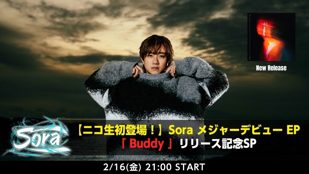 ついにメジャーデビューとなったSoraのMajor Debut EP「Buddy」リリースを記念し、Soraが生出演するスペシャル番組を2月16日(金)にニコニコ生放送にて放送いたします。