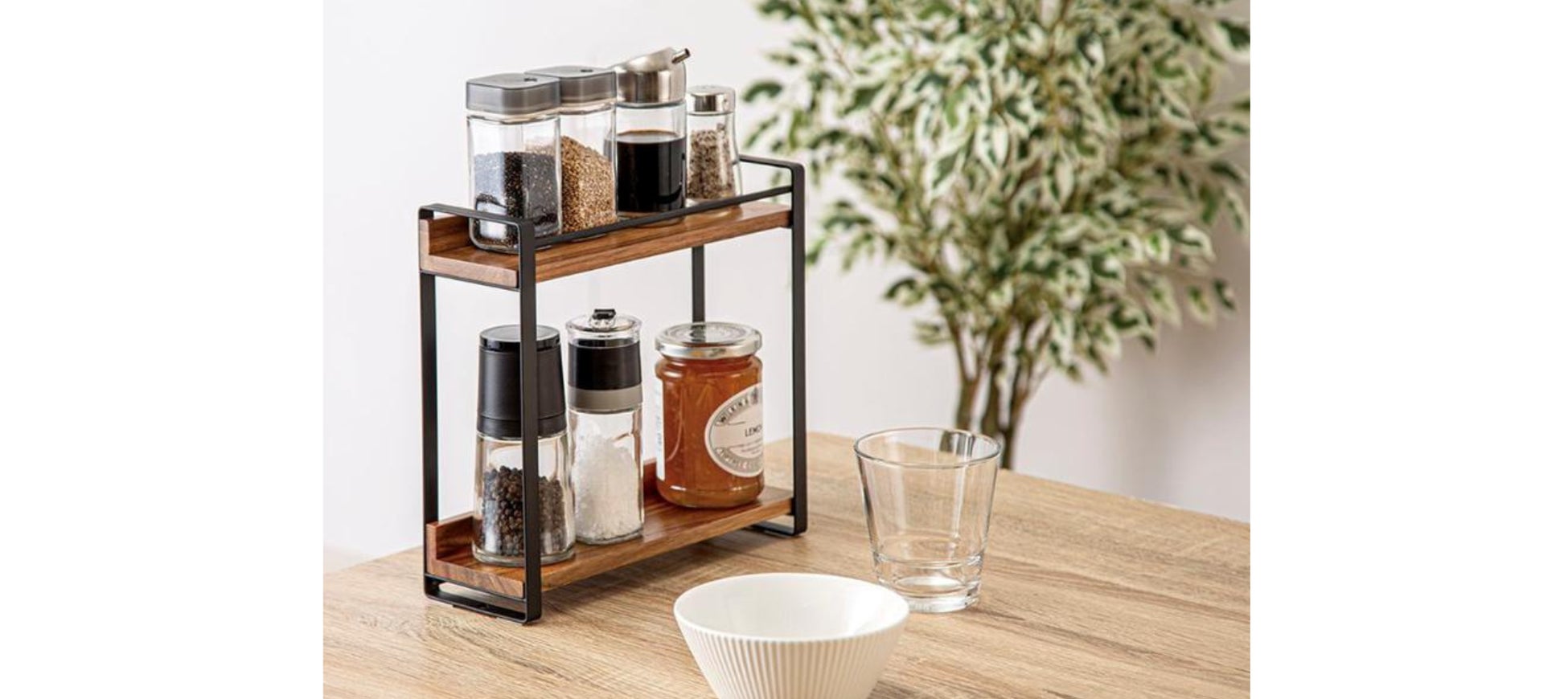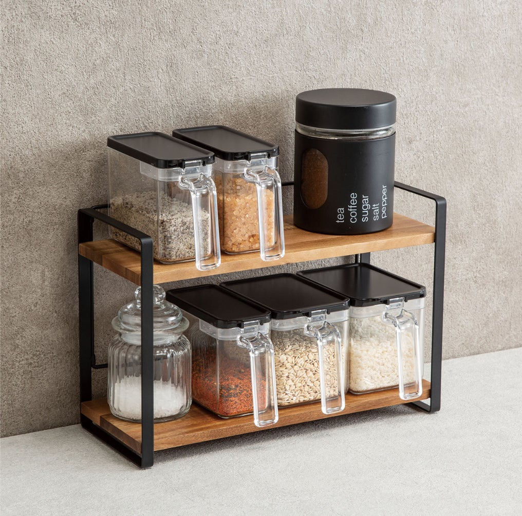 アカシアとスチールの異素材の組み合わせがおしゃれな、キッチンでの収納を華やかにする調味料ラック。この度ご好評につき全国のニトリで取り扱いを開始いたしました。