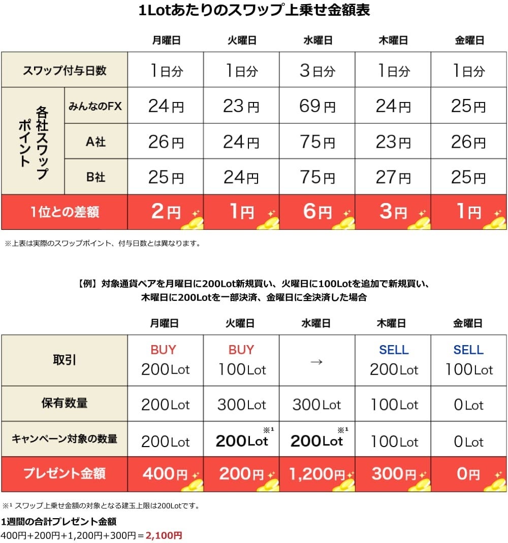 2026年1月13日(火)~2026年3月31日(火)の期間中、FX口座におけるメキシコペソ/円 LIGHT、トルコリラ/円 LIGHTの新規買ポジションに対して、スワップポイントが他社より1円でも安い場合は、差額をキャンペーン期間終了後にまとめてプレゼントいたします。
