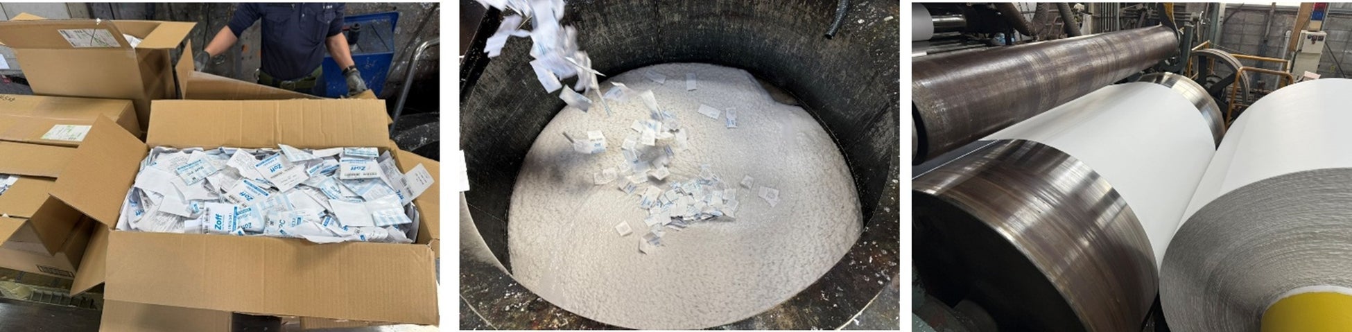 役目を終えたレンズ包装紙は、回収後、さまざまな工程と多くの人の手を経て、「Zoff x Campus」オリジナル キャンパスノートの表紙として新たな役割を担います。その生まれ変わりのプロセスの一部をご紹介します。