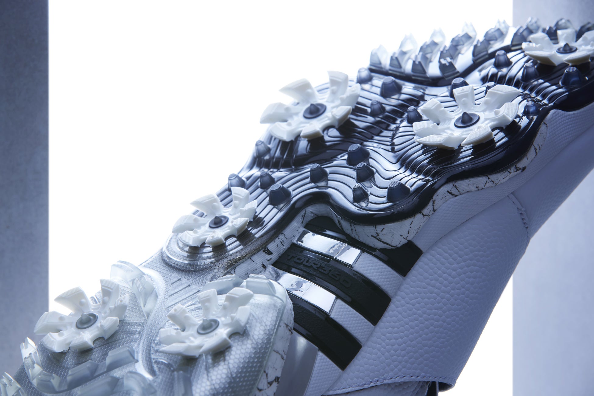 ッドソールには、アディダス独自のクッショニング素材「BOOST」をフルレングスで採用。かかった圧力の分だけ反発する性能を活かし、歩行時にはソフトなクッショニングを、スイング時には高い反発力を発揮します。