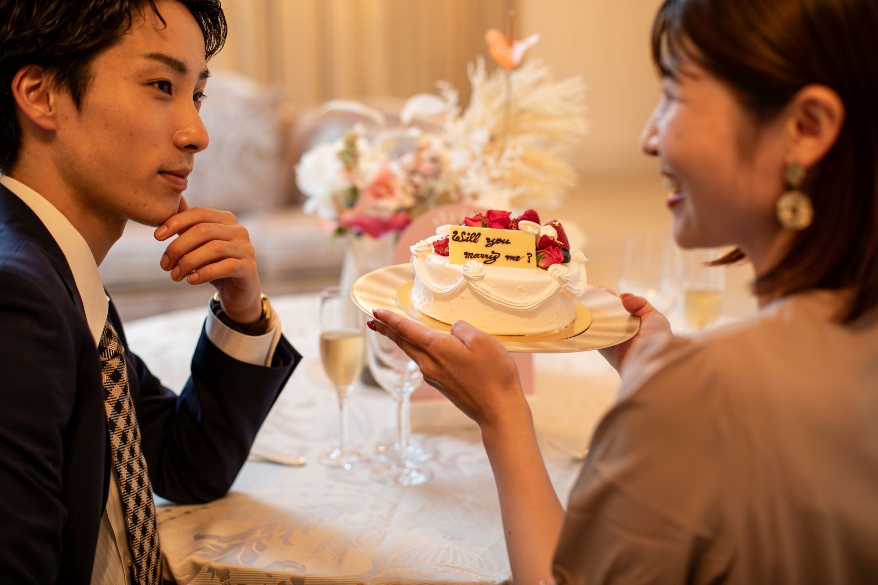 ・内容:プロポーズディナー(2名様分)/プロポーズケーキ 12cm(2名様分)/乾杯酒(2名様分)※ノンアルコール可/卓上テーブルコーディネート(おまかせ)/12本の薔薇の花束/チャペル内音響/チャペル内キャンドル演出/バブルマシーン/ガーデンコーディネート(おまかせ)/会場貸切料/プロデュース料