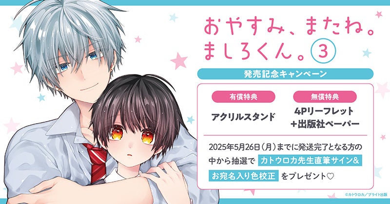 ホーリンラブブックスではカトウロカ先生最新コミックス『おやすみ、またね。ましろくん。(3)』発売を記念して、豪華キャンペーンを実施いたします!