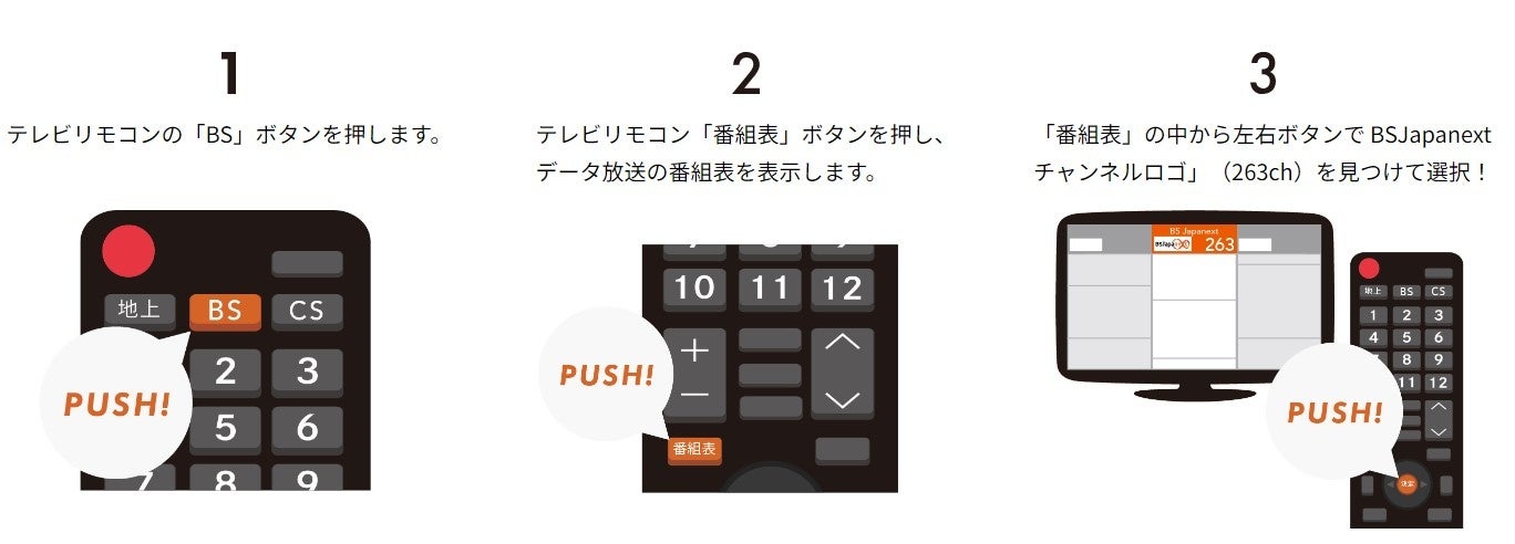 ③「番組表」の中から左右ボタンで 「BSJapanextチャンネルロゴ」(263ch)を見つけて選択