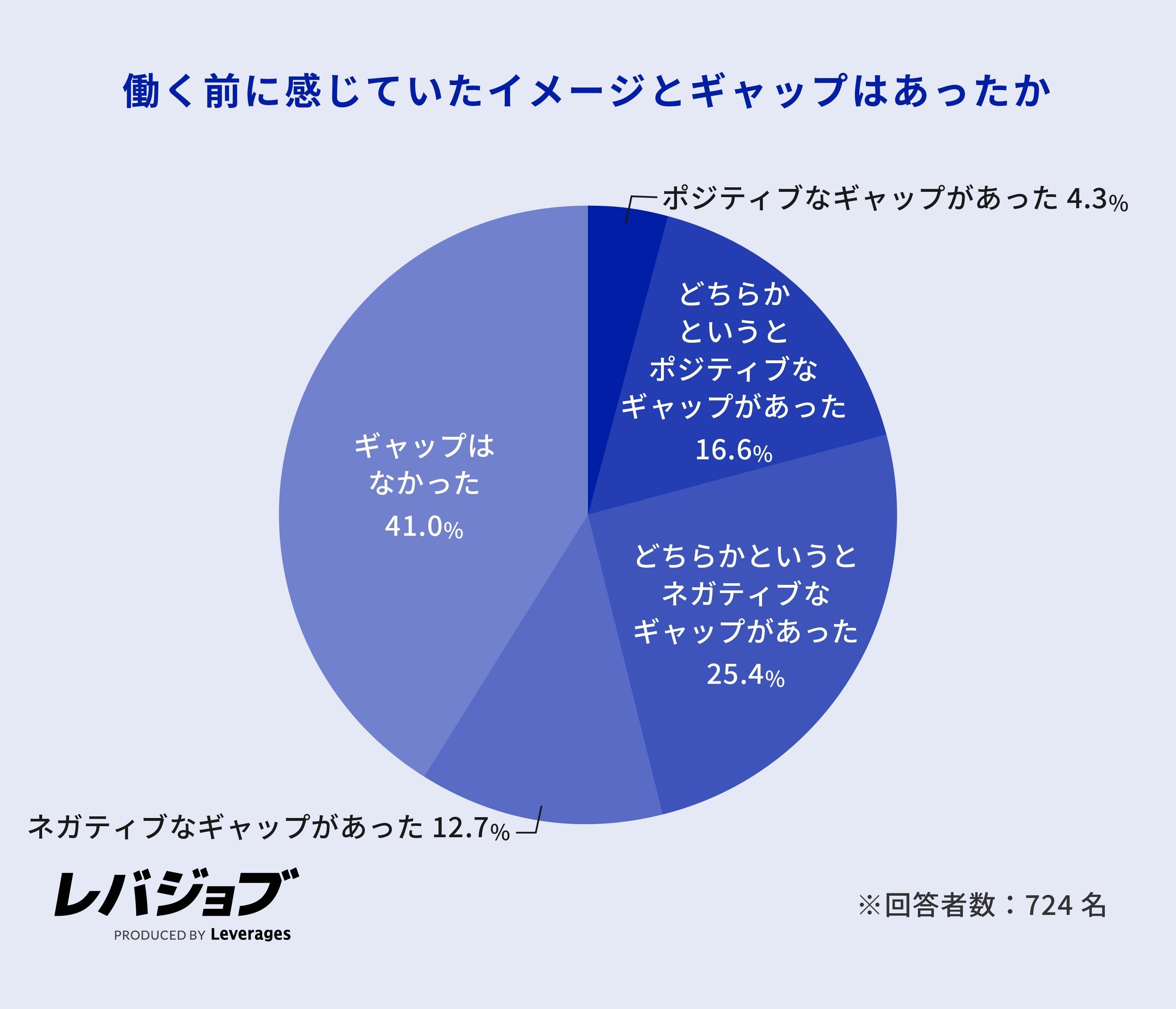 「働く前のイメージとギャップなし」と回答した方が4割超え、その他の見解は二分