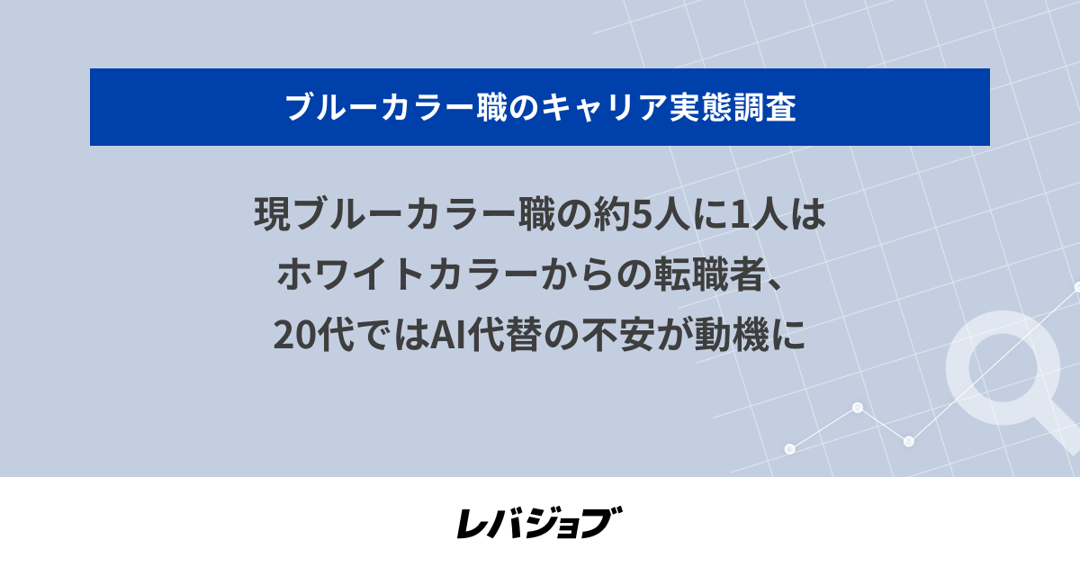 現ブルーカラー職の約5人に1人はホワイトカラーからの転職者、20代ではAI代替の不安が動機に