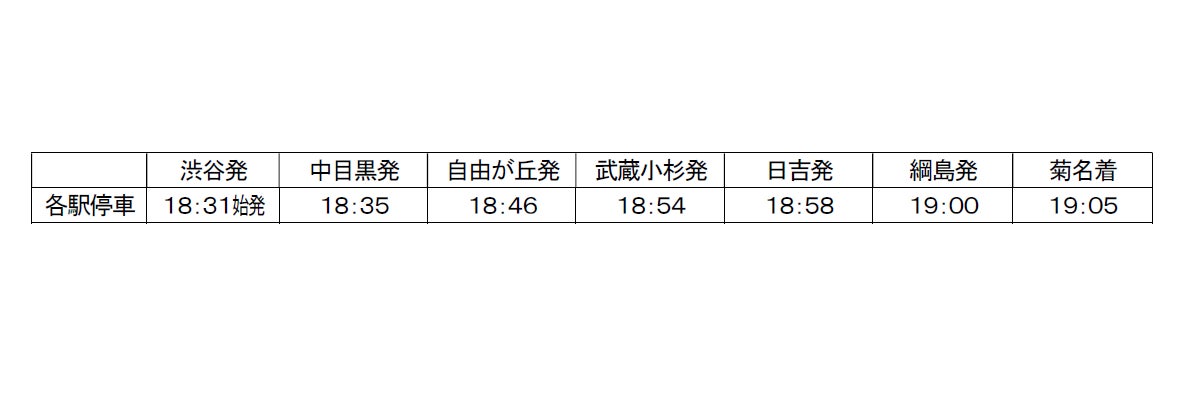 ※田園都市線、大井町線、池上線、東急多摩川線、こどもの国線、世田谷線におけるダイヤ改正はありません。