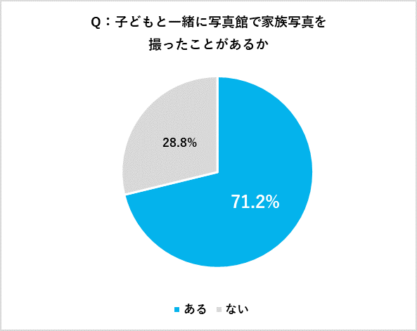 子どもの写真に関して、家族と子どもの写真、また写真撮影の習慣についても調査を実施。写真館で家族写真を撮ったことがあるか、の質問には、71.2%が「ある」と回答し、多くの人が家族で写真館での写真撮影を行ったことがあることがわかりました。一方で、写真館以外で家族の写真を日常的に撮っているか、と質問したところ、「日常的に撮っている」と回答した人はわずか14.4%という結果となりました。日常を一緒に過ごすことが多い家族だからこそ、あえて日常で家族写真を撮る、という発想にならない人が多いと考えられます。