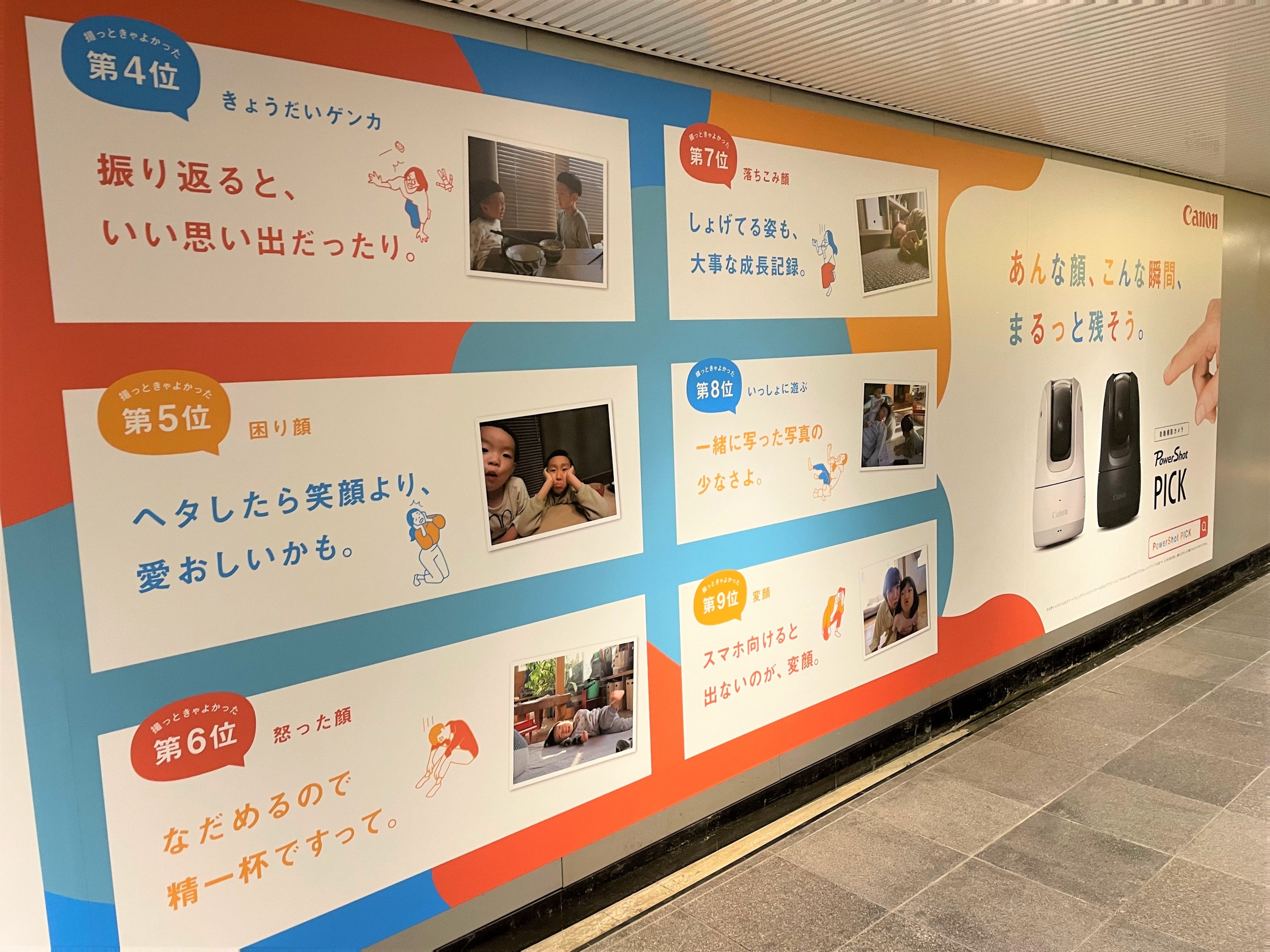 本展では、撮れていなかったと後悔しているシーンをランキング形式で展示します。展示する写真は、日常シーンをパパ・ママの代わりに撮影してくれる自動撮影カメラ「PowerShot PICK」(パワーショット ピック)で撮影したもの。写真には、子育てに奮闘するパパ・ママの「心の声」を添えて展示します。