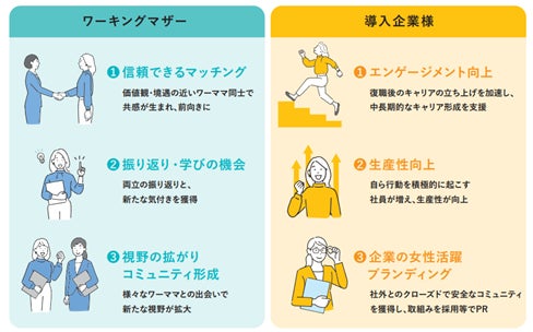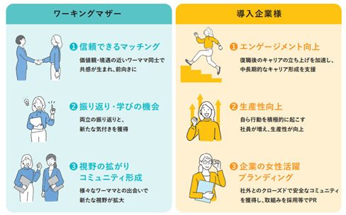 ※1 ワーキングマザー同士をマッチングさせ、1on1で相談できるキャリア形成支援サービス。