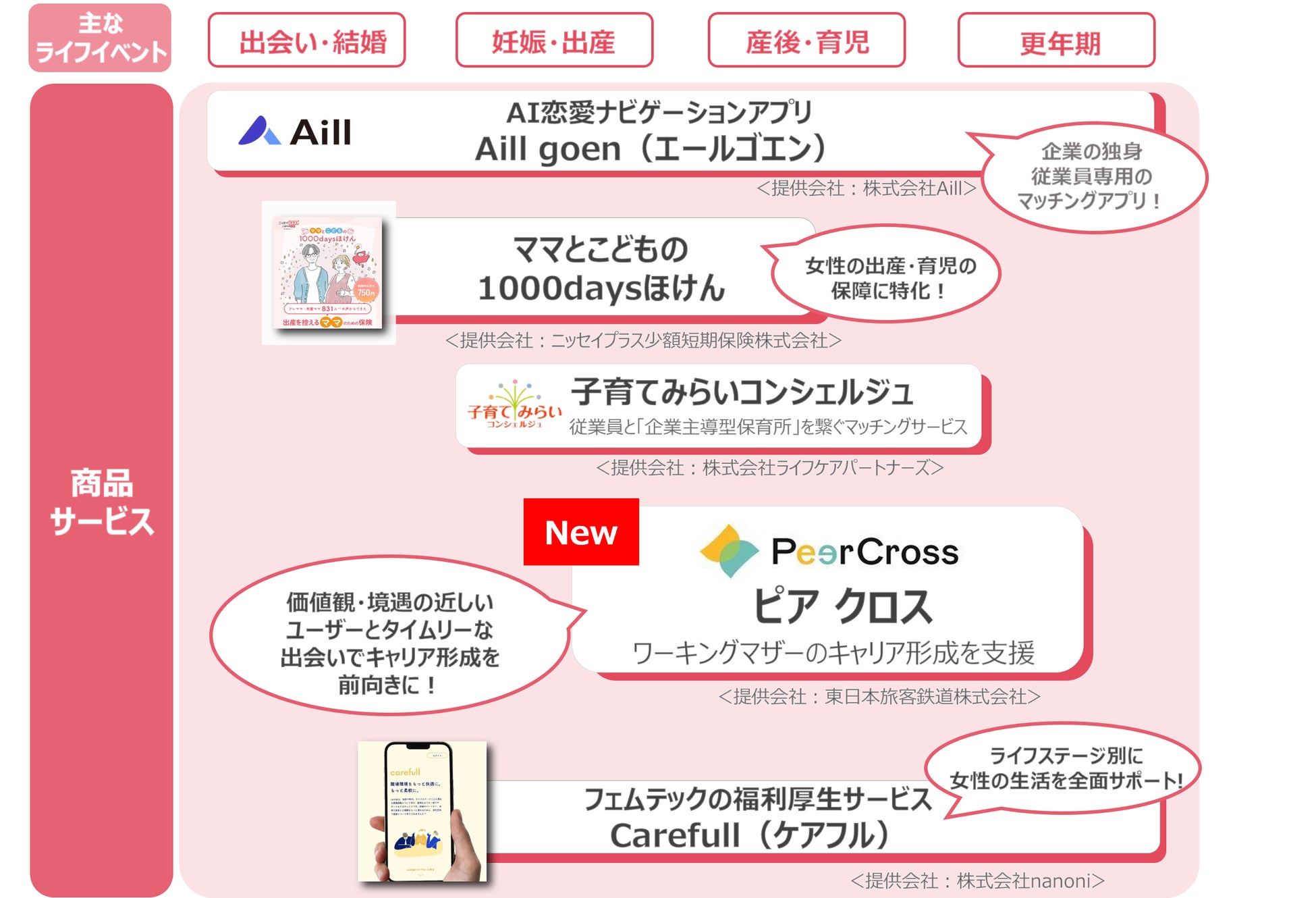 日本生命保険相互会社(代表取締役社長:清水博、以下「日本生命」)および東日本旅客鉄道株式会社(代表取締役社長:喜㔟陽一、以下「JR東日本」)は、2024年8月1日(木)から、JR東日本が運営するキャリア形成支援サービス「PeerCross(ピアクロス)※1」を、日本生命が運営している「ライフイベント・キャリア両立支援パッケージ※2」に組み込み、サービスとして提供します。