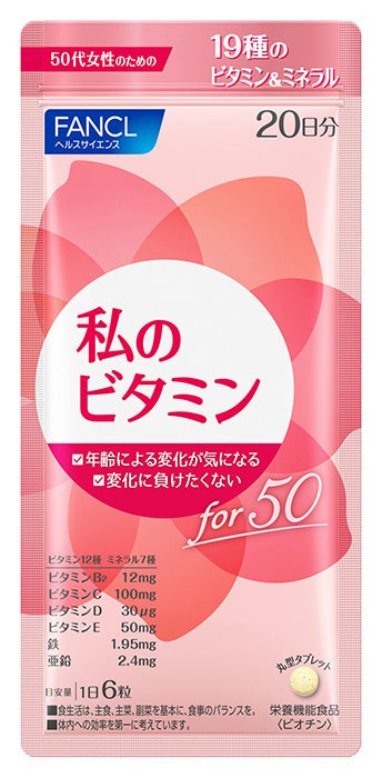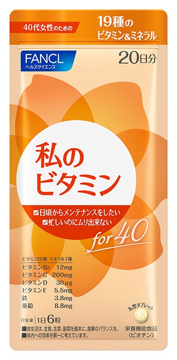 株式会社ファンケルは、4月から全国のドラッグストアを中心に、「私のビタミン」シリーズ(20日分:1,080円<税込>)を新たに発売します。発売するのは、「私のビタミン for 20」から「私のビタミン for 60」までの計5製品です。各年代それぞれの女性に必要な基本栄養素を、これ一つで補えます。毎日の食事にプラスして、手軽に栄養素を摂りたい女性にお勧めです。