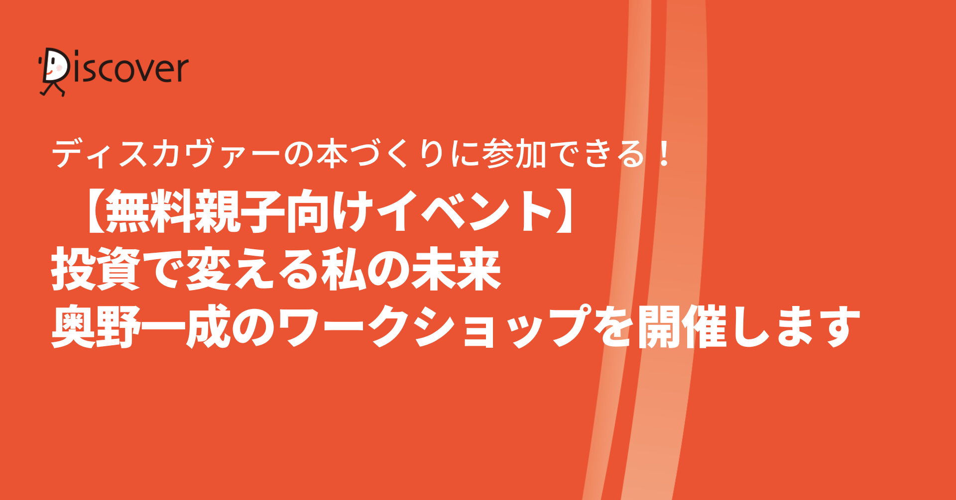 株式会社ディスカヴァー・トゥエンティワン(本社:東京都千代田区、取締役社長:谷口奈緒美)は、奥野一成氏の親子向け投資ワークショップを2022年8月20日に開催します。