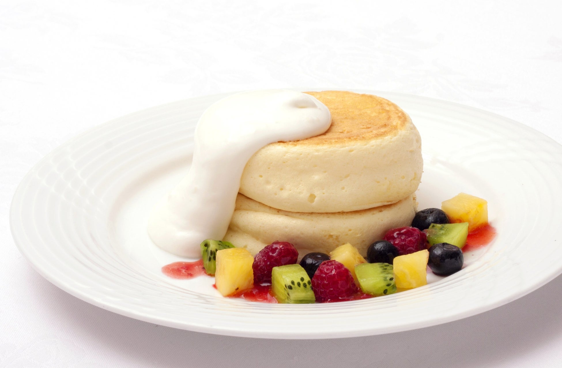 カットフルーツ、ドライフルーツ、ミックスナッツ、生クリーム、メープルシロップ、蜂蜜、ラズベリーソース、チョコレートソース、マカダミアナッツ