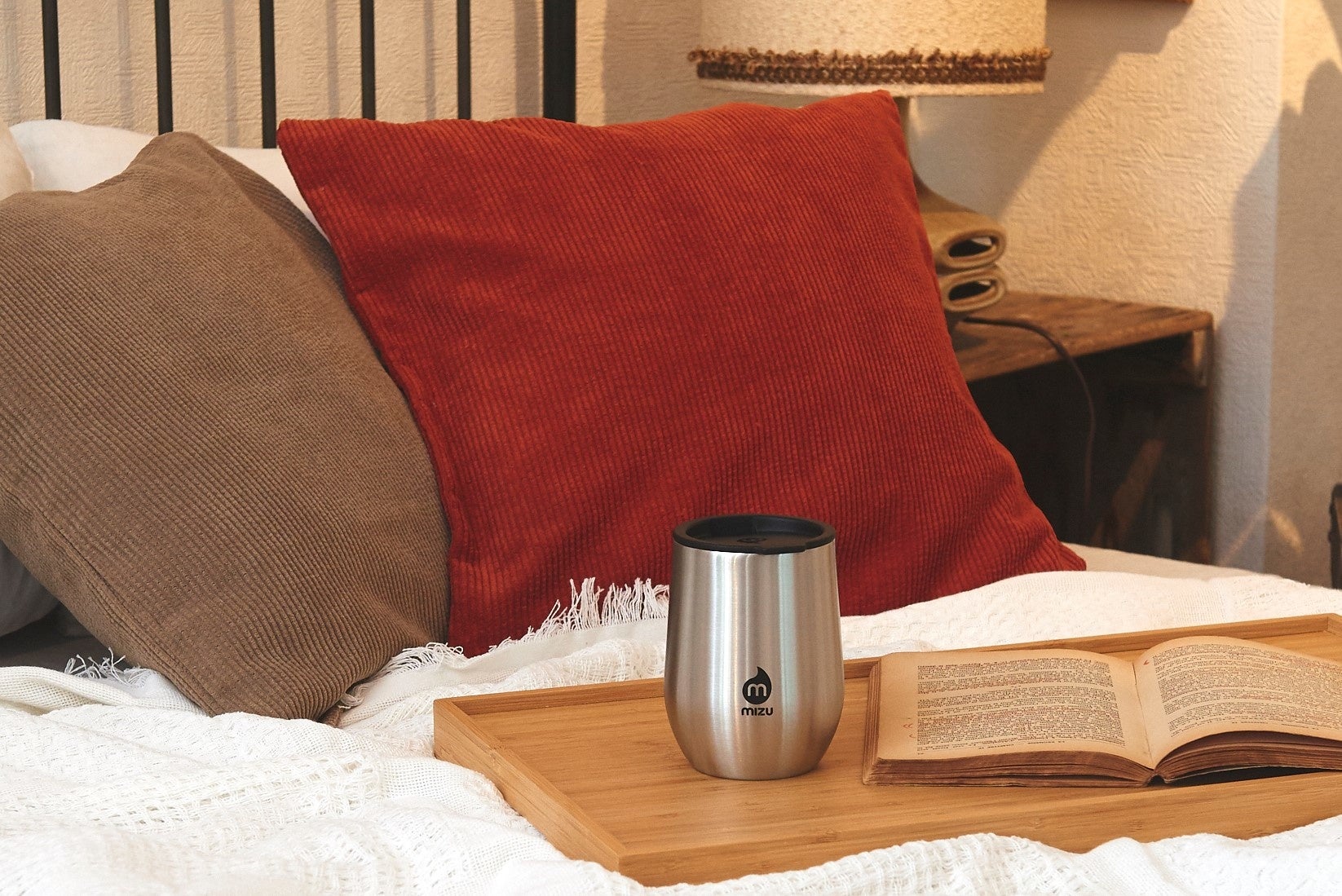 お酒を飲む時間までもお洒落にするMizuのワインタンブラーは、ワインをより美味しく感じさせてくれるボウル形状になっており、温度を保つ役割の他、ほこりやごみの混入を防ぐ蓋が付属されています。