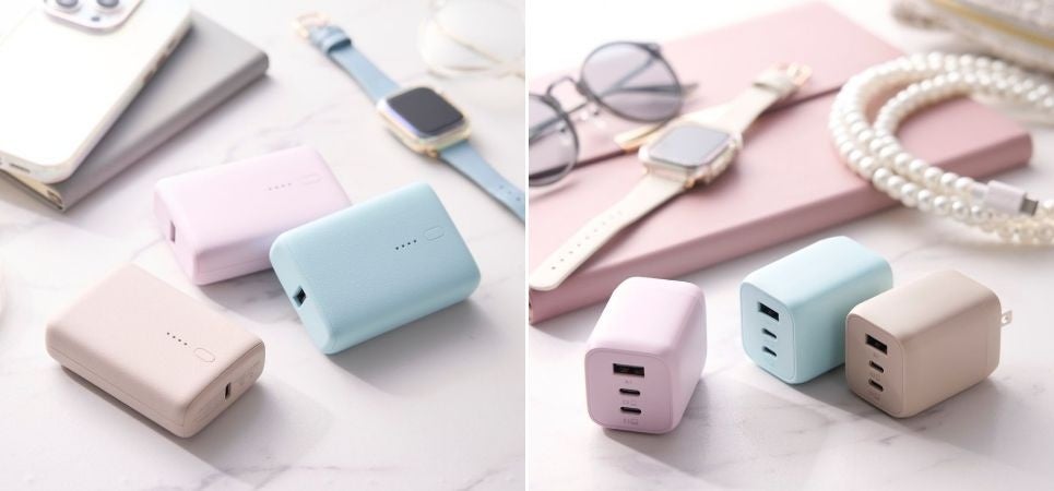 オン・オフ問わず使いやすい上品なニュアンスカラー!「&me」シリーズから、モバイルバッテリー、AC充電器、アクティブタッチペンを新発売
