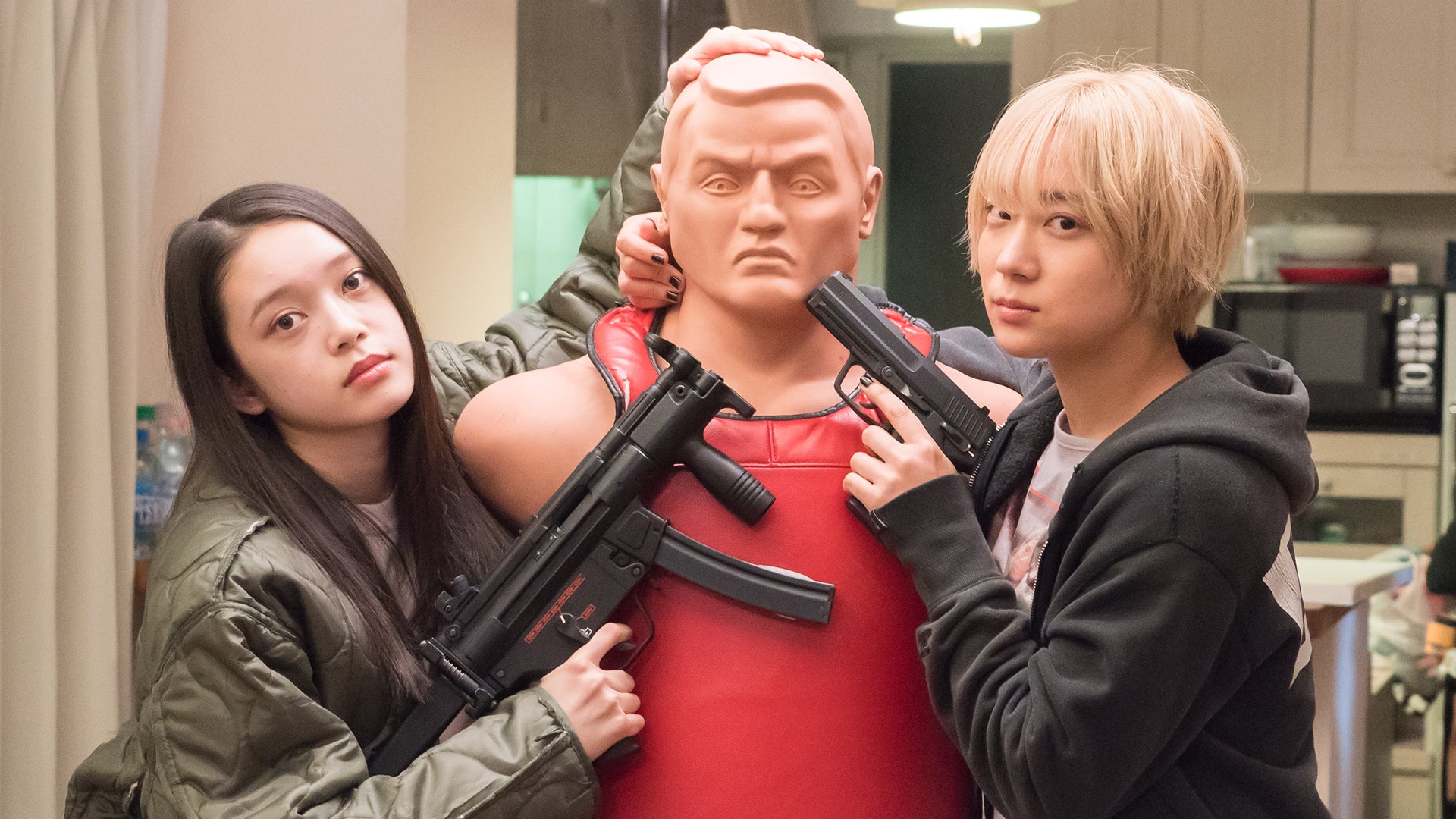 殺し屋のひとり、杉本ちさとを演じる髙石あかりは、2020年に舞台『鬼滅の刃』で竈門禰豆子役に抜擢された、今大注目の新人女優。殺し屋でありながら天真爛漫なちさとの2面性のあるギャップを見事に演じます。また『るろうに剣心 最終章The Final 』、『るろうに剣心 最終章The Beginning』等、数々の作品で高度なスタントをこなしてきた、現役のスタントウーマン・伊澤彩織が深川まひろを演じ、作中でも思わず魅了されるアクションを披露しています。社会人になることを要求された“元女子高生”殺し屋コンビの奮闘に注目です。