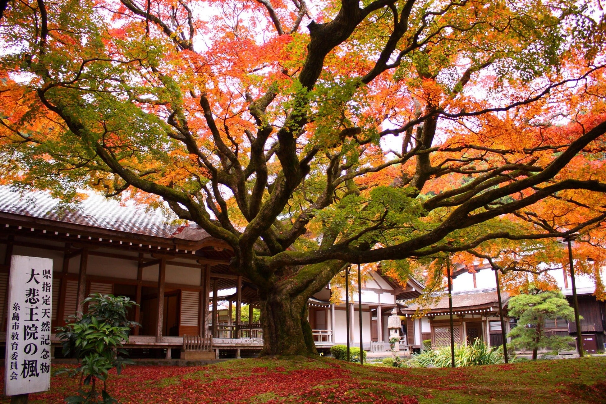 カフェを楽しんだ後は、国指定重要文化財「木造千手観音立像」が安置されている「雷山千如寺大悲王院」を参拝し、本堂で御祈願を行います。境内には、福岡県の天然記念物に指定されている樹齢約400年の大カエデがあり、紅葉の季節には特に美しい姿を見せます。四季を通じてさまざまな表情を楽しむことができるこの場所で、心を癒してください。