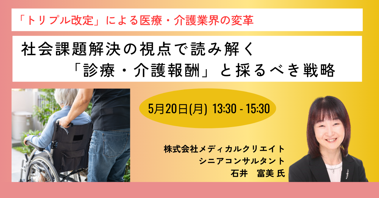 【JPIセミナー】「”トリプル改定”による医療・介護業界の変革社会課題解決の視点で読み解く”診療・介護報酬”と採るべき戦略」5月20日(月)開催