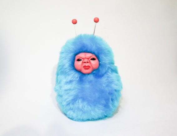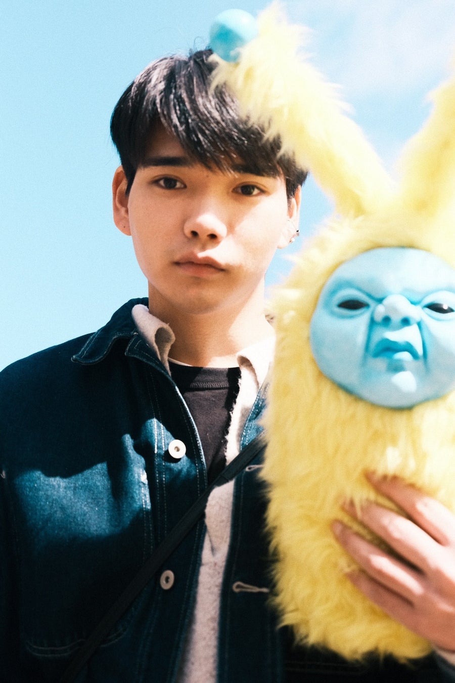 山口京将はモフモフとした毛を全身にまとった人面生物「ミムズシ」を制作し続けるアーティストです。幼少期の頃に母親の「人の顔をした鳥をみた」という不思議な作り話から着想を得て、大学在学中に制作をスタートしました。カラフルで柔らかな毛に覆われ、喜怒哀楽を感じさせず表現しがたい顔つきで佇む、20cm程度の手のひらサイズのものから2mを超えるものまで、多種多様なミムズシをこれまで制作してきました。今回はファーを使った作品を中心に、細い皮ひもを1本1本体毛のように植え付けて新しい表現に挑戦した新作も含めて約10点を展示します。