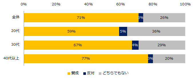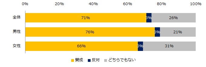 官公庁・自治体で、公務員資格取得者以外の外部人材を登用することについての賛否を伺ったところ、71%が「賛成」と回答。男女別・年代別でも過半数が「賛成」と回答しています。