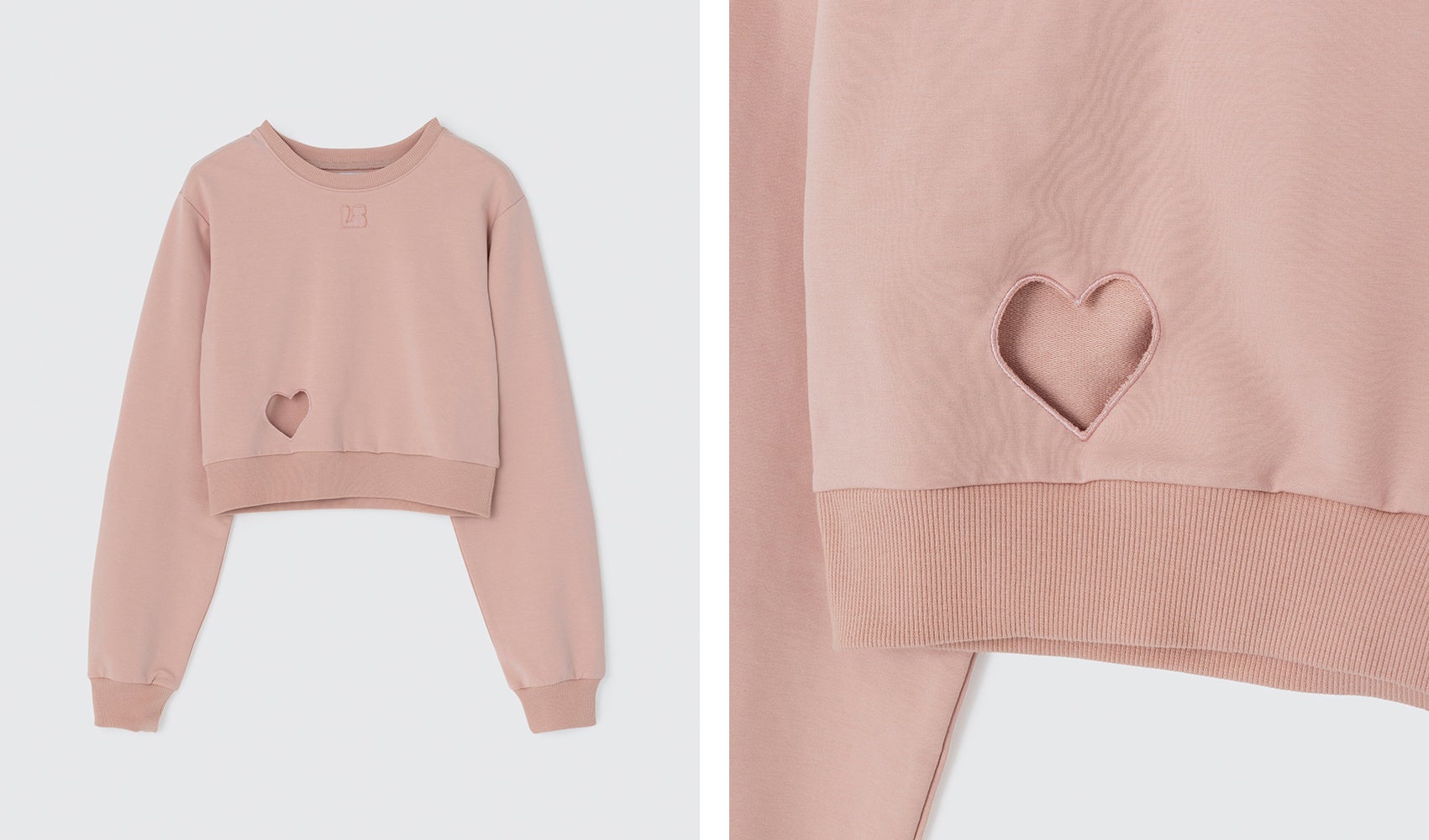 「LS」ロゴのワッペンがワンポイントになっているクロップドスウェットは、一見シンプルなデザインながら、袖を通すと右脇にハートのカッティングが出現。肌をチラ見せさせたり、インナーとレイヤードして自分らしい着こなしが楽しめる一枚です。