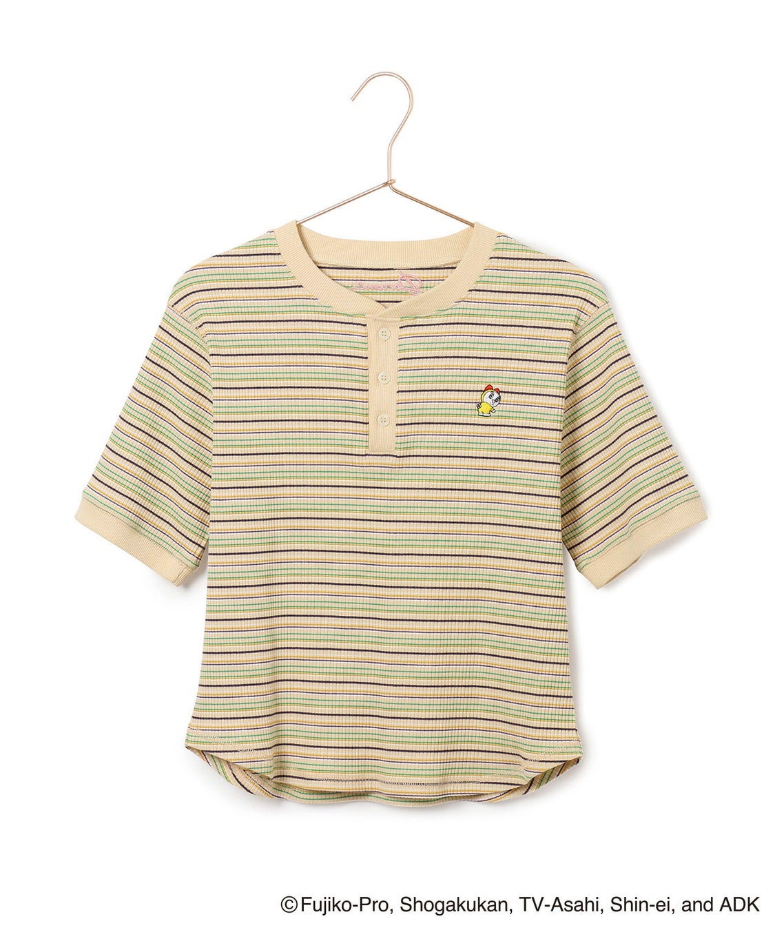 ドラミのイメージにピッタリのマルチボーダー柄が可愛らしいヘンリーネックトップス。