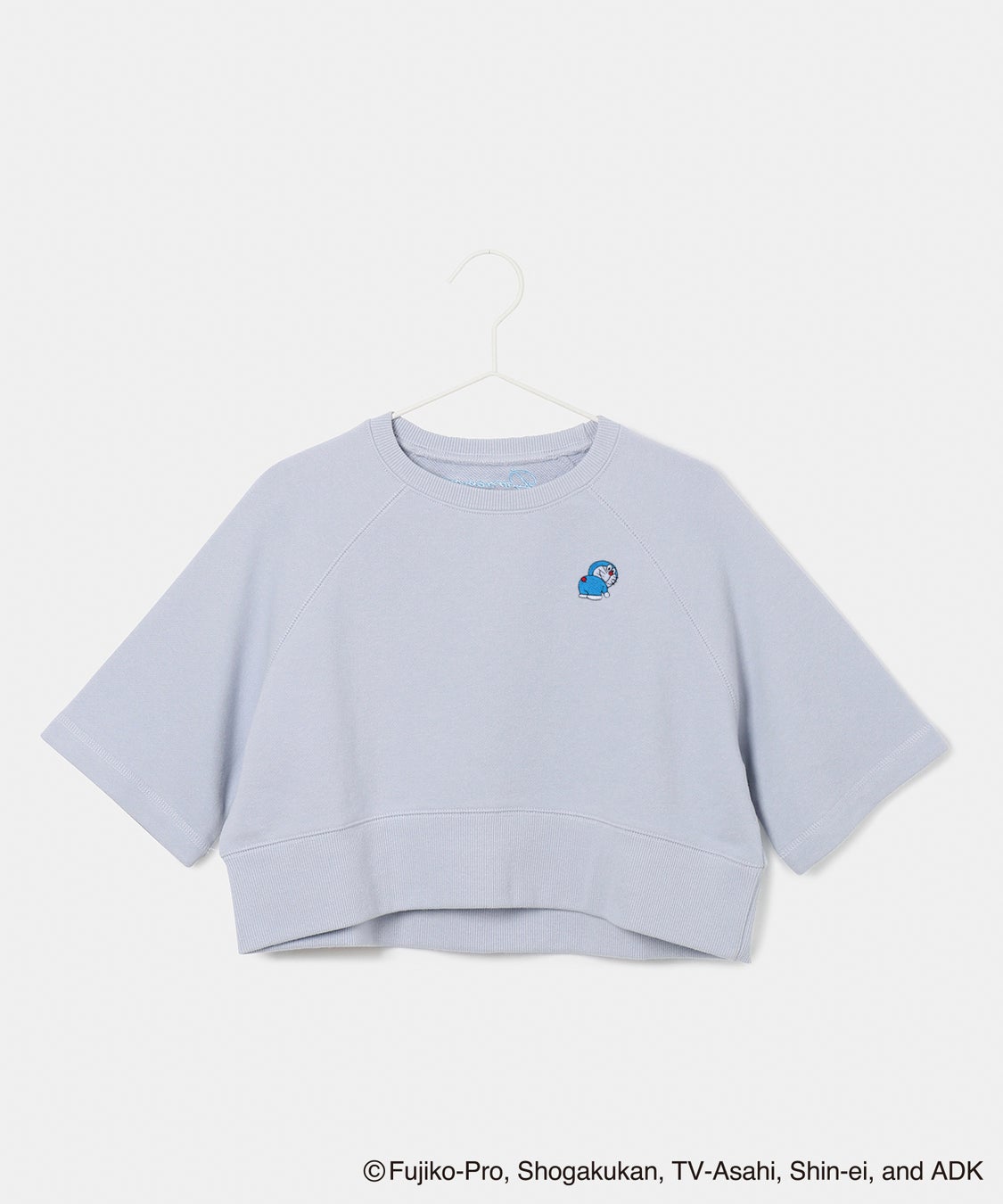 ドラえもんとドラミがおしりを向けた、可愛らしい後ろ姿を背面に刺繍を施したスウェットプルオーバー。