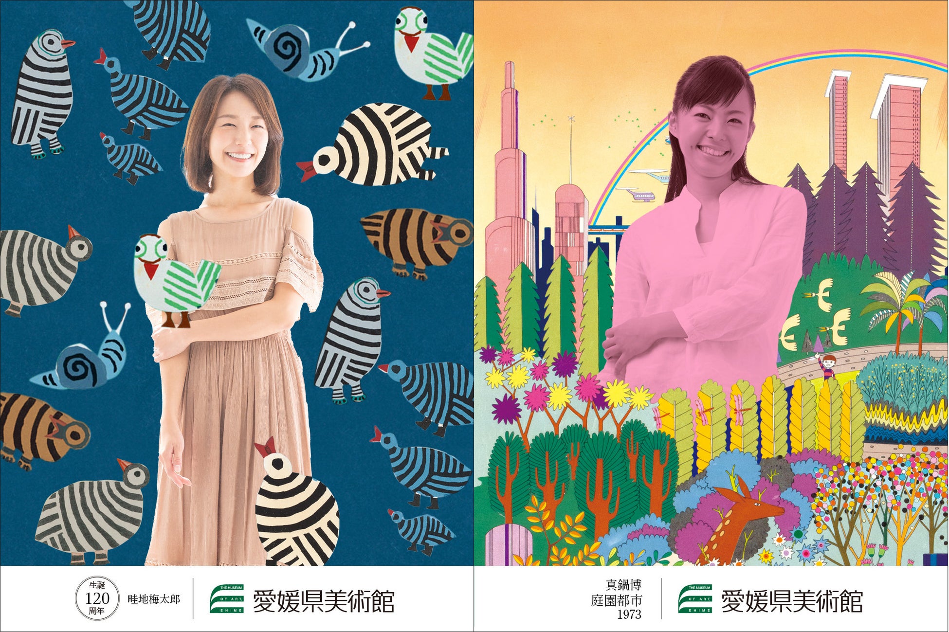 また、愛媛県イメージアップキャラクター「みきゃん」「こみきゃん」のフレームと、杉浦非水のフレームでも、引き続き撮影いただけます。