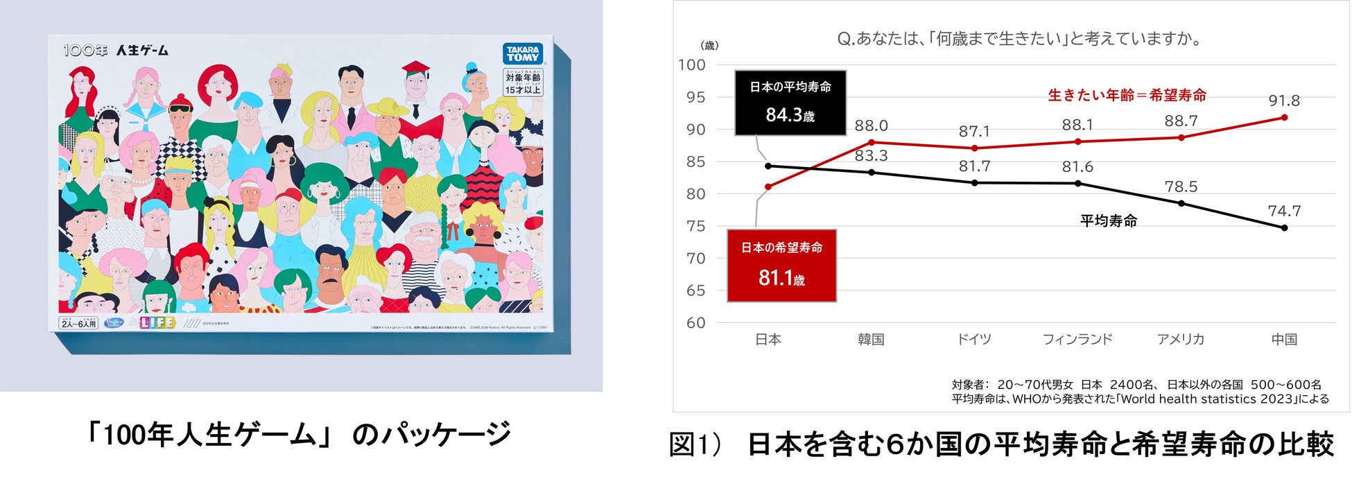 株式会社博報堂(本社:東京都港区、代表取締役社長:水島正幸、博報堂)のシンクタンク「100年生活者研究所」は、盤ゲーム「人生ゲーム」(発売元:株式会社タカラトミー)の新商品である「100年人生ゲーム」(希望小売価格:3,960円税込)を共同開発し、2024年11月23日(土)よりタカラトミーの公式ショッピングサイト「タカラトミーモール」などで発売いたします。「100年人生ゲーム」は幸福を点数化したウェルビーイングポイントを集め、“幸せな100年人生”を疑似体験するゲームです。お金を集めて億万長者を目指す通常の人生ゲームとは異なり、幸福を点数化した「ウェルビーイングポイント(=ウェルポ)」を集める仕様です。本商品は実話に基づいており、「幸せな100年人生」を疑似体験することができます。