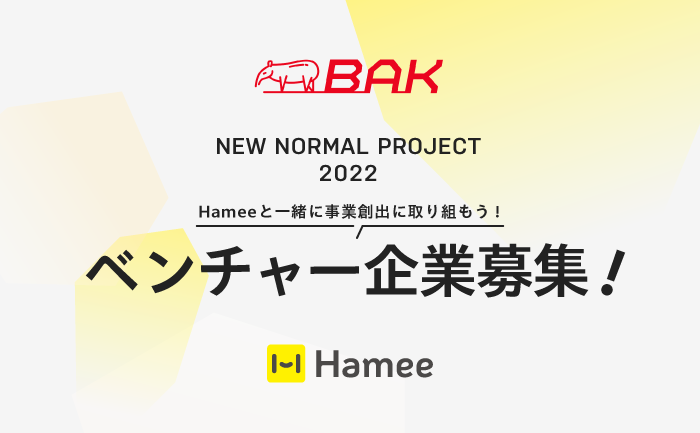 Hamee株式会社、「BAK NEW NORMAL PROJECT 2022」にパートナー企業として参加。Hameeとともに課題解決・事業創出に取り組むベンチャー企業を募集!