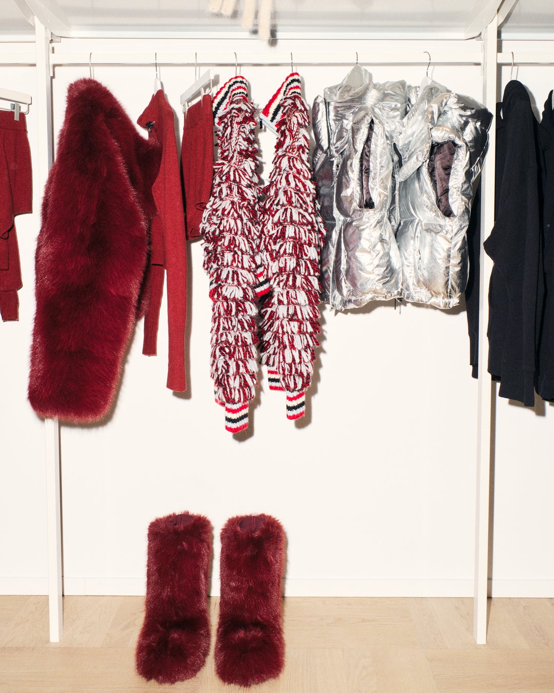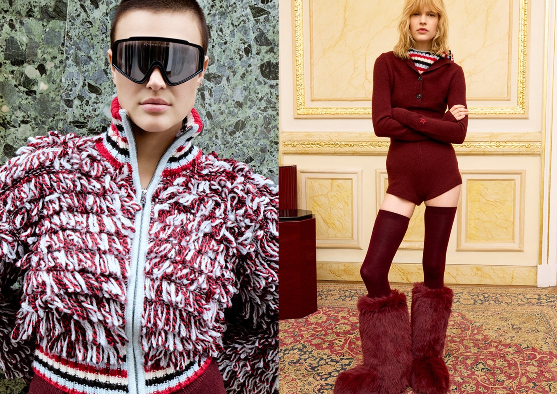 アクセサリーはポンポン付きの帽子、ラップアラウンドサングラス、スター柄でオーバーサイズのウールとモヘア素材のスカーフ、シューズにはフェイクファーのロングムーンブーツ、パッド入りのショートムーンブーツが揃います。