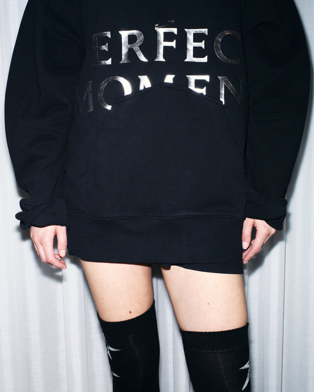 Perfect Momentを象徴するブラックとホワイト、シルバーを基調に、コントラストとして深みのあるバーガンディやアイシーブルーを取り入れたカラーパレット。素材にはフェイクファー、レザー、光沢感のあるルレックス、メリノウール、モヘア、カシミア混などを使用しています。