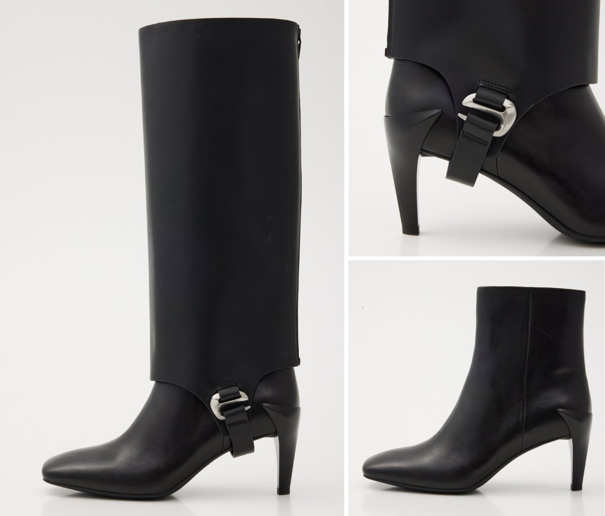 カバーブーツデザインのロングブーツは、カバー部分を取り外すとショートブーツになる、2wayで楽しめるデザイン。