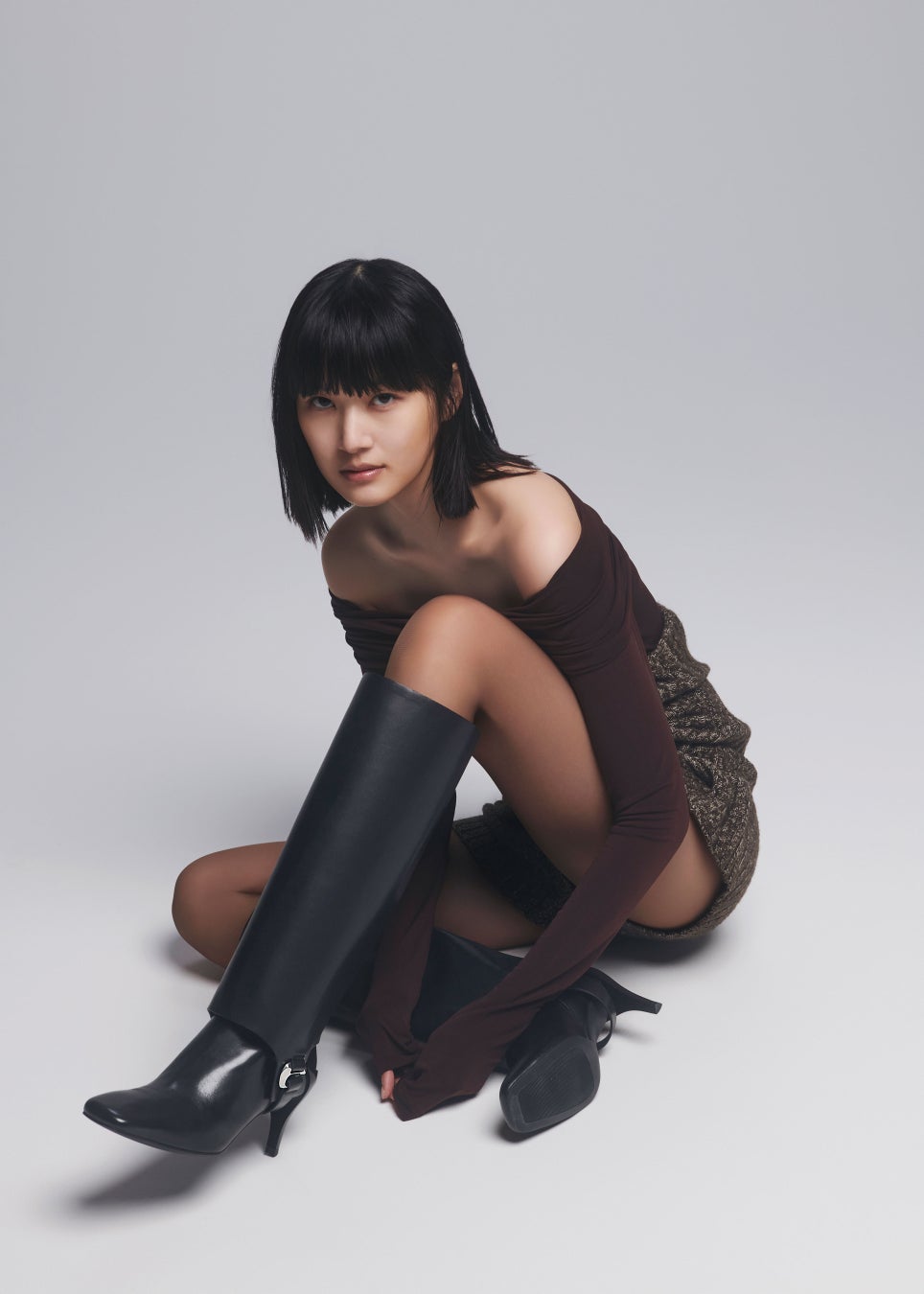 モノクロ世界におけるラインの美学が持つ力を表現したコラボレーションアイテムのムードに合わせ、あえて飾りすぎない削ぎ落とした世界観で撮影しました。