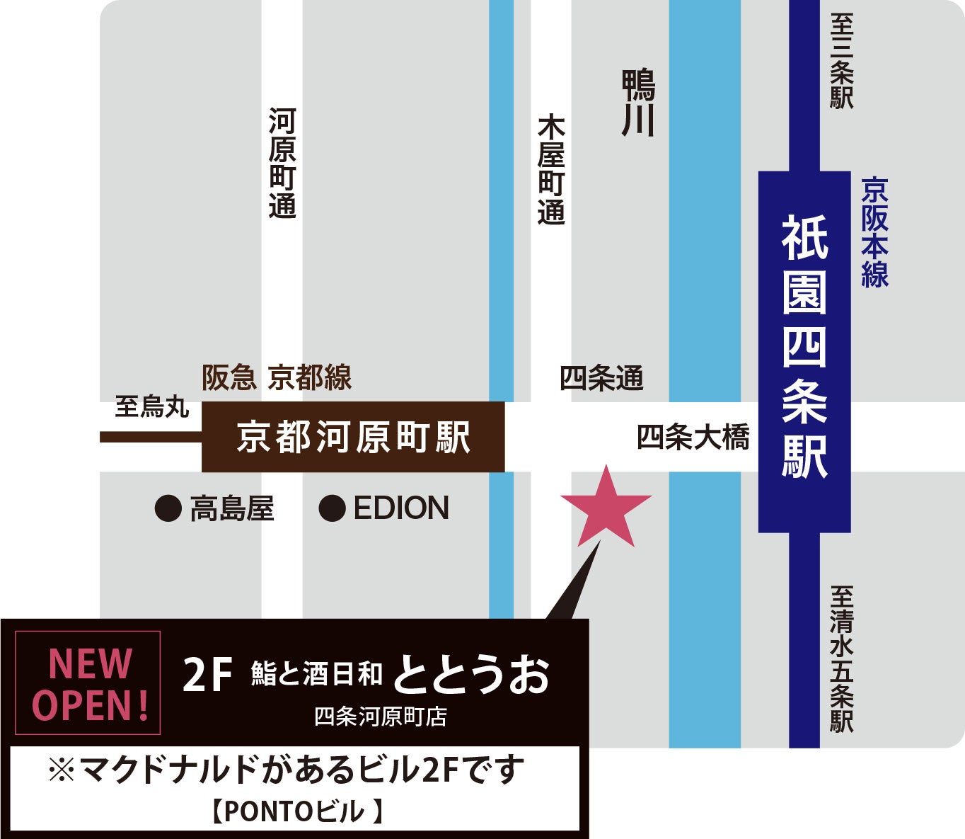 アクセス :阪急京都線 河原町駅1B出口より徒歩1分/