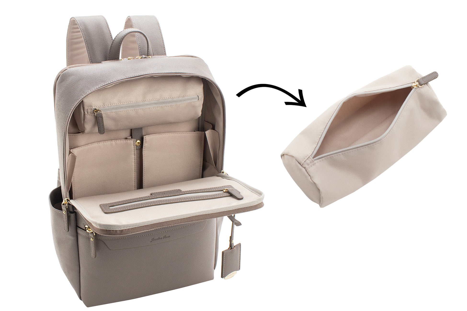 「リモハピvol.4」「リモハピvol.4 エアリィ」は、忙しい毎日に役立つ機能が充実しています。リュック上部の空間を収納として活用できる着脱可能なポーチ、メイン収納部から独立したPC 収納部、さらに小物の整理に便利なポケットを備えており、使い勝手が抜群です。また、ボディはお手入れしやすく傷が目立ちにくい上品な合皮素材を使用しているため、長く綺麗にお使いいただけます。