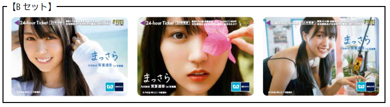 オリジナル24時間券の券面には乃木坂46賀喜遥香1st写真集「まっさら」に掲載されている写真のほか、写真集には掲載されていない貴重な写真もデザインしています。大人用6種類を3種類ずつ、Aセット、Bセットとして専用台紙付きで発売します。