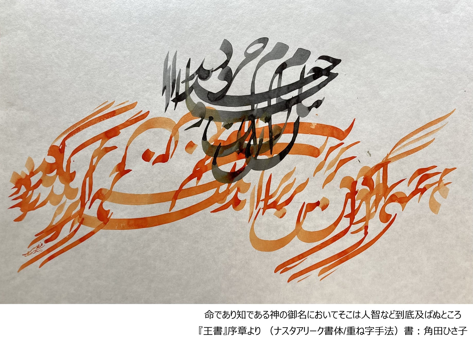 内容:イランの芸術「ペルシア書道」についてお話します。日本の書と比較しつつ道具や書体について、展示作品にも使用した伝統的な作品の型「斜め書き」「重ね書き」、また進化しつづける現代イラン書道についてもお話します。