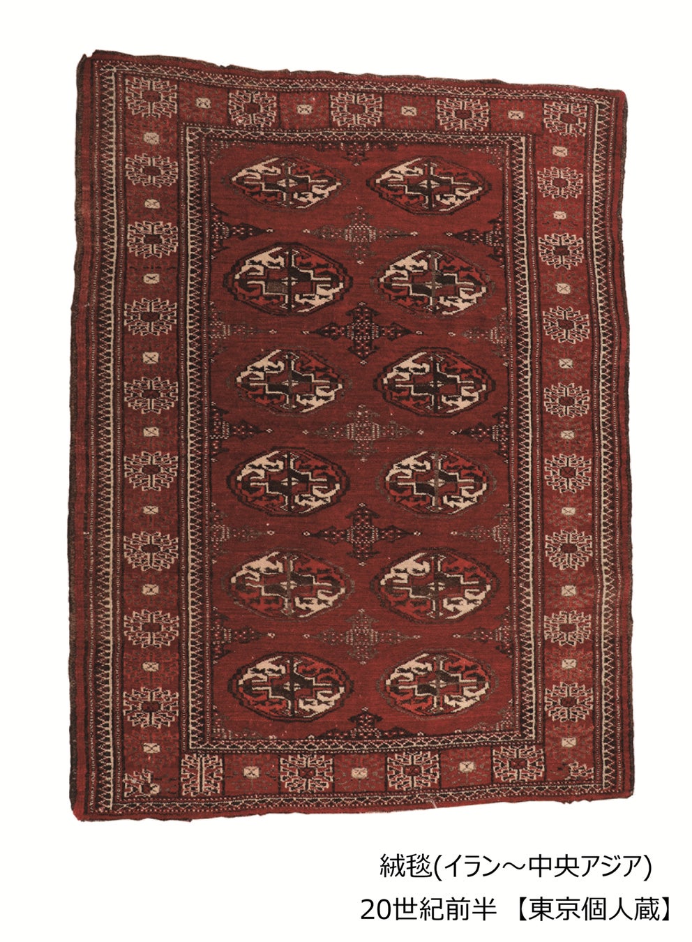 イランの織物は、中央アジア、中国、インド、シリア〜エジプトなど、周辺の織物の技術を吸収し、さらに発展させることで、イラン独自の織物技術、染色技術を発展させてきました。本展では、19世紀以降の資料ではありますが、色鮮やかな絨毯や絹織物を展示します。