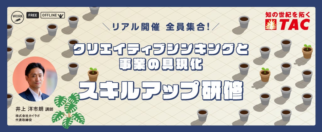 公認会計士や税理士など、多くの国家資格や検定試験の受験指導などの教育事業を展開しているTAC株式会社(東京都千代田区、代表取締役:多田敏男)は、法人向け人材教育部門から、新しい事業の創出に必要なクリエイティブな思考をスキルとしてとらえ、スキル向上とスキル発揮の場を提供する研修について、リアル開催のワークショップで体感できる「クリエイティブシンキングと事業の具現化スキルアップ研修 体験無料セミナー」を2023年5月17日(水)に実施します。