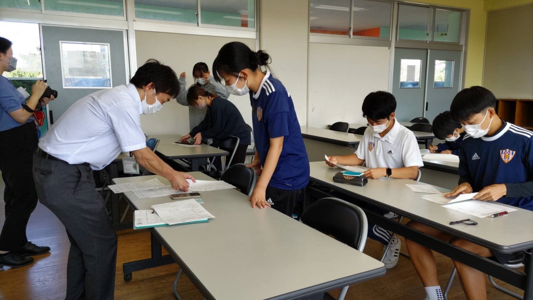 今回、申請した学生の古本菜乃葉さんは、「今後、マイナンバーカードが必要だと思ったことと、マイナポイントがもらえることで、今回参加しました。」と話し、今回参加した経緯としては、「学校の授業や実習などで役場まで行く時間が作れない中、学校で申請ができたのはよかった。申請はもっと難しいと思っていたが、簡単にできてよかった」と述べ、約15分のほどで手続きは終了した。