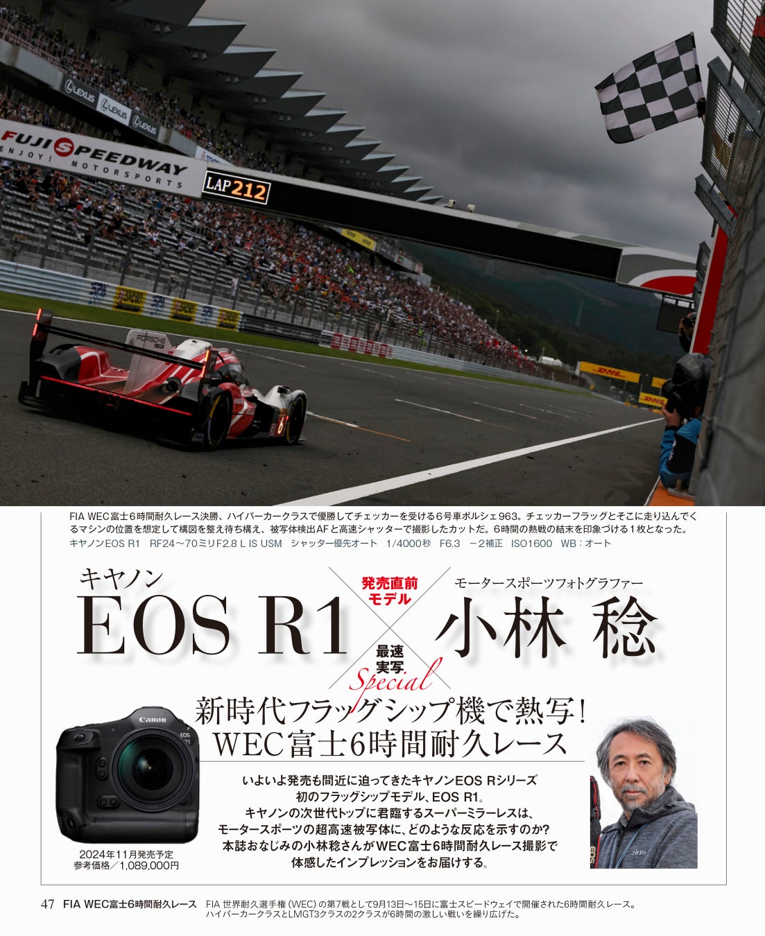 いよいよ発売が間近に迫ってきたキヤノンEOS Rシリーズ初のフラッグシップモデル「EOS R1」。キヤノンの次世代トップに君臨するスーパーミラーレス一眼は、モータースポーツの超高速被写体に、どのような反応を示すのでしょうか。モータースポーツフォトグラファーの小林稔さんが、WEC富士6時間耐久レースを撮影し体感したインプレッションをお届けします。