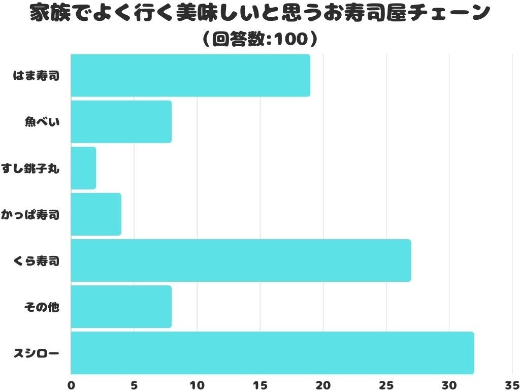 家族でよく行く美味しいと思うお寿司屋チェーンをアンケートにて調査したところ、1位は「スシロー」でした。