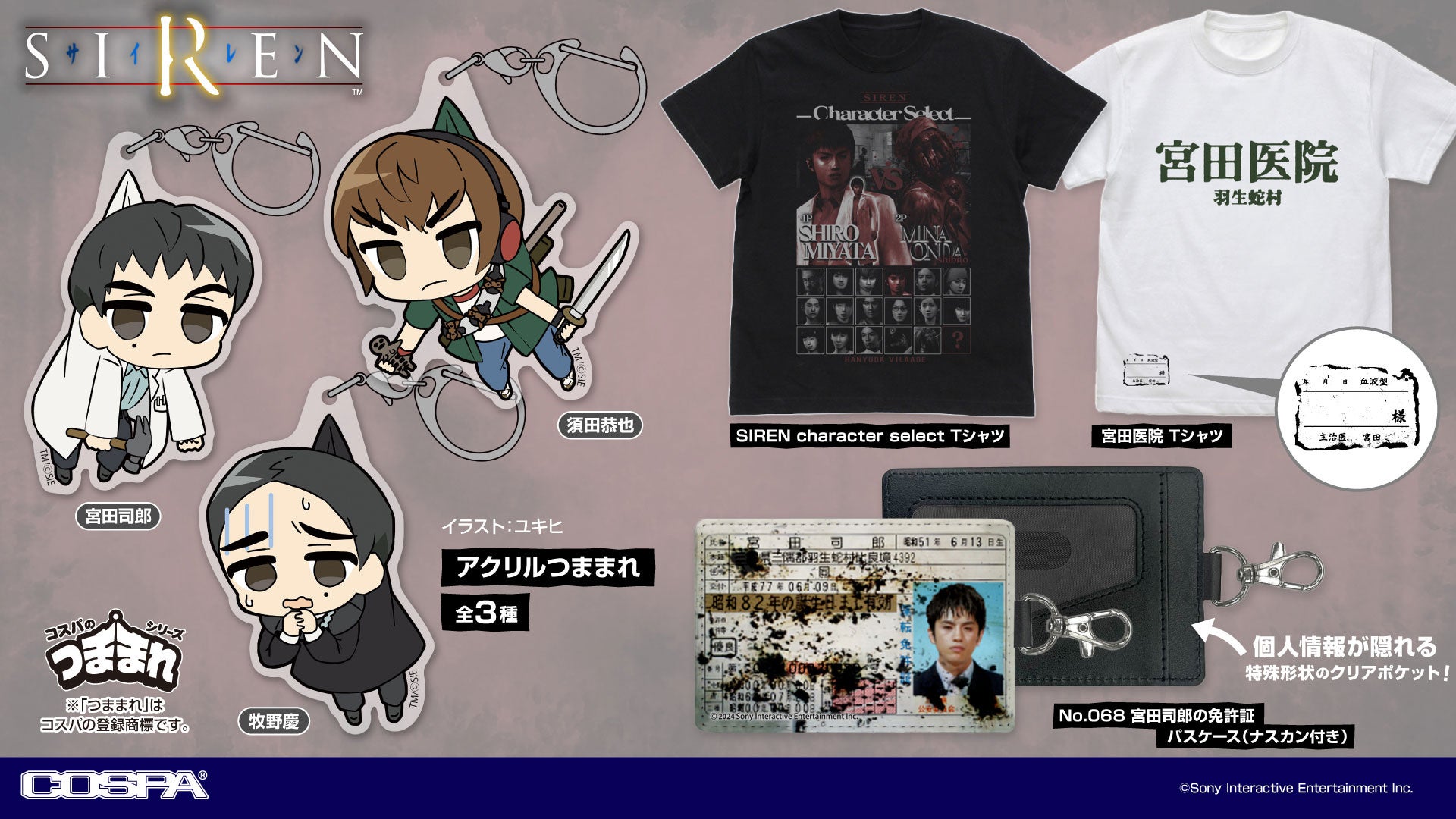 『SIREN』ファン垂涎の新グッズ。宮田医院の患者気分が楽しめるTシャツや、宮田司郎の免許証風パスケースなど、ゲームの世界観が楽しめるグッズ6種がコスパより登場。