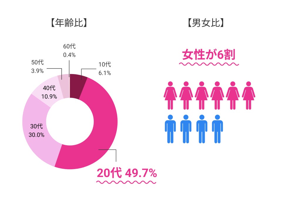20代後半のお客様の割合が、全体の28%!女性比率は約6割(※3)